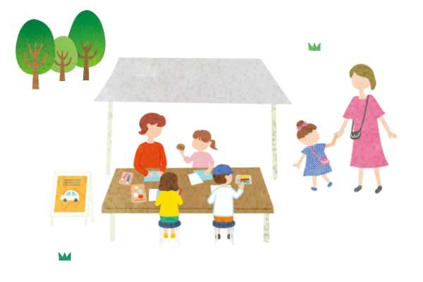 活動紹介の展示や野菜販売、竹ぽっくり・椿ランタン作り体験を実施。 |