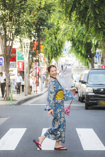「本多横丁」脇道での一コマ。浴衣、美女、後姿。映えますね~。