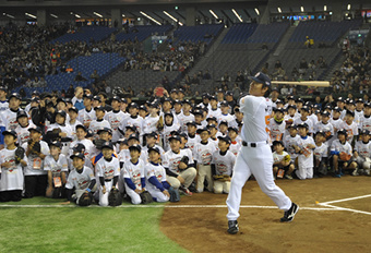 東北中学生選抜と在日米国Jrユース選抜による親善試合が松井秀喜監督、デレク・ジーター監督の元で行われました。
