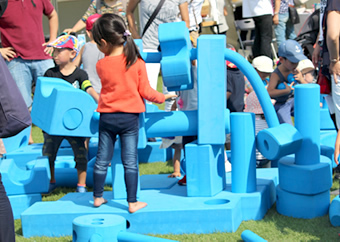 今回の勇者の大冒険は、芝生の上で巨大ブロック「イマジネーション・プレイグラウンド」を使用したフリープレイ(自由遊び)に挑戦!