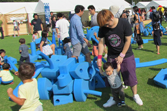 勇者の大冒険は、昨年好評だった芝生の上で巨大ブロック「イマジネーション・プレイグラウンド」を使用したフリープレイ(自由遊び)に挑戦! プレイグラウンド・オブ・ホープの協力により、子どもたちは安全に、思い思いの遊び方でブロック作りを楽しんでいました。