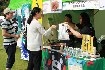 東北や熊本をはじめとする地域の自慢の秋の味覚が集結した青空マルシェを開催。新鮮で美味しい食材と特産品が御苑に集まり、多くの方が、新鮮な野菜や、各地の特産物を購入していました。