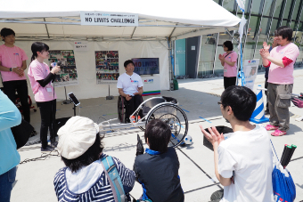 NO LIMITS CHALLENGE (東京都主催のパラスポーツ体験プログラム)と連携し、無料で参加できるパラスポーツ体験として、陸上競技用車いす「レーサー」と「ボッチャ」の体験会を実施。イベント 2日目には陸上競技のレジェンド「永尾嘉章」さんが来場。