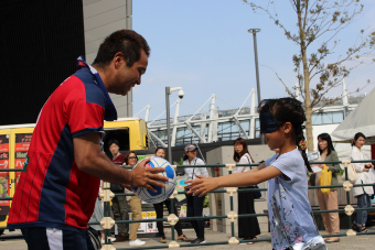 12日(日)のみ日本ブラインドサッカー協会主催の「ブラインドサッカー体験コーナー」も展開。ブランドサッカーの体験会を通して、その楽しさだけでなく、「音」と「声」のコミュニケーションの重要性も学んで頂く貴重な機会を提供することができました。