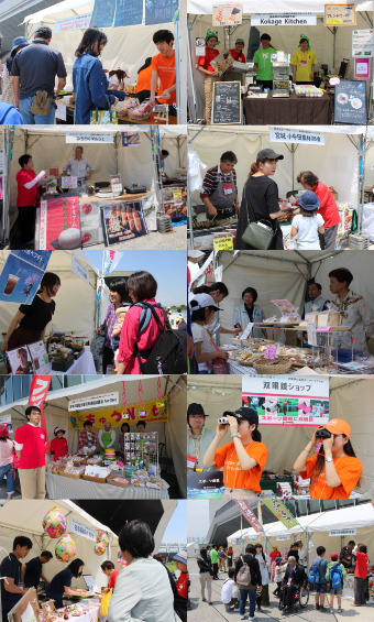 東北被災地をはじめ、国内外の生産物・特産物、近隣三市(調布・府中・三鷹)の福祉作業所でつ くられたお菓子・雑貨等の販売を実施。